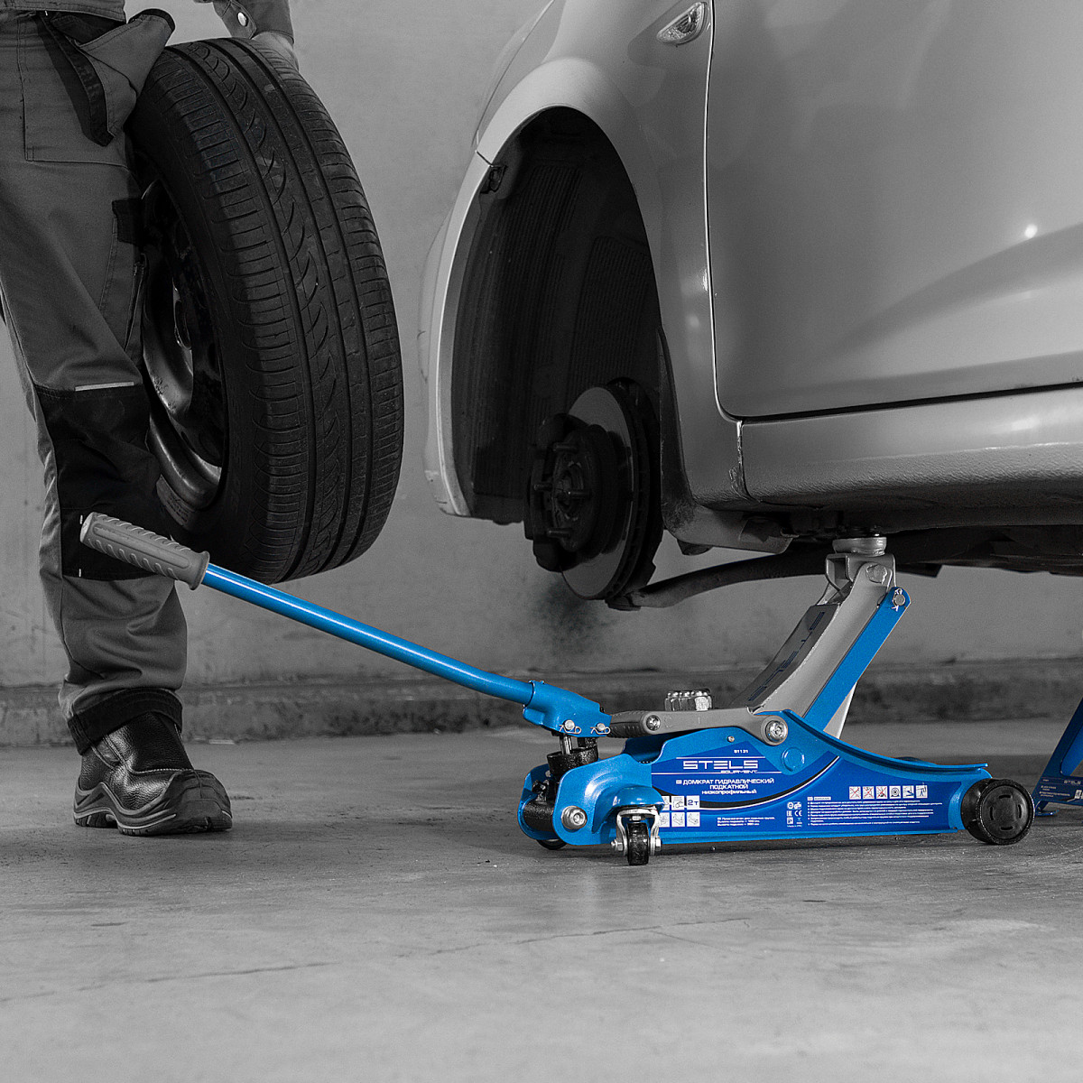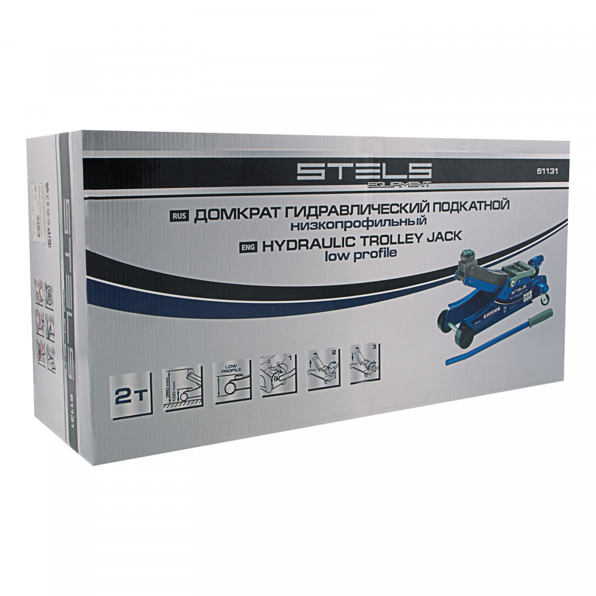 Домкрат гидравлический подкатной, поворотная рукоятка, 2 т, Low Profile, 100-350 мм Stels