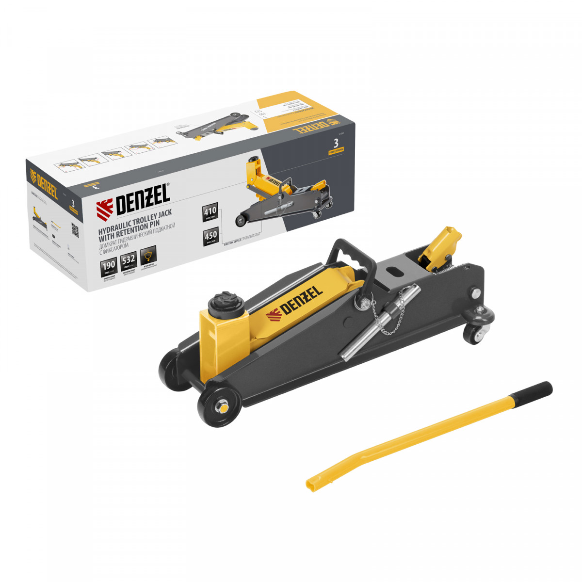 Домкрат гидравлический подкатной с фиксатором, 3 т, 190-532 мм, SUV/ Denzel