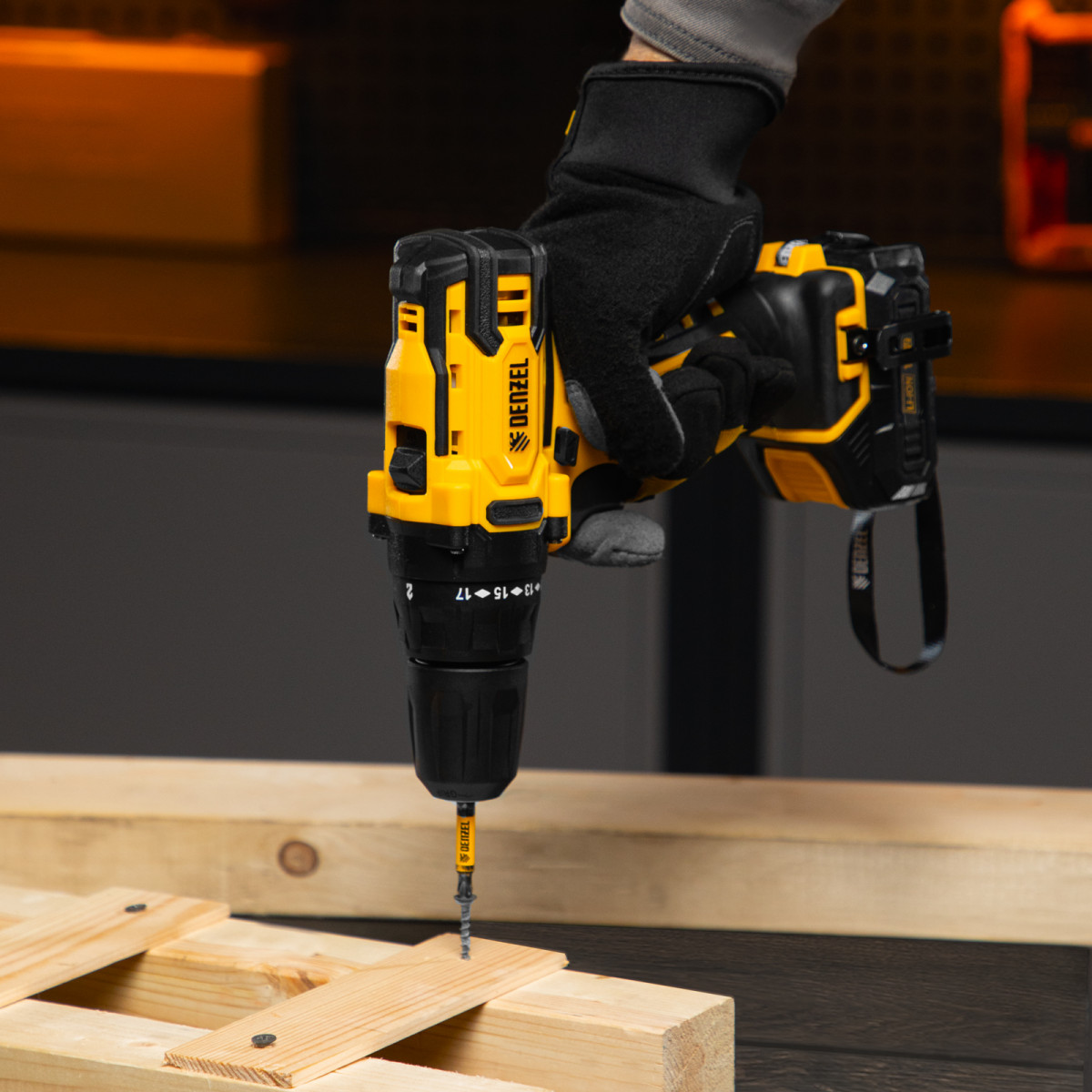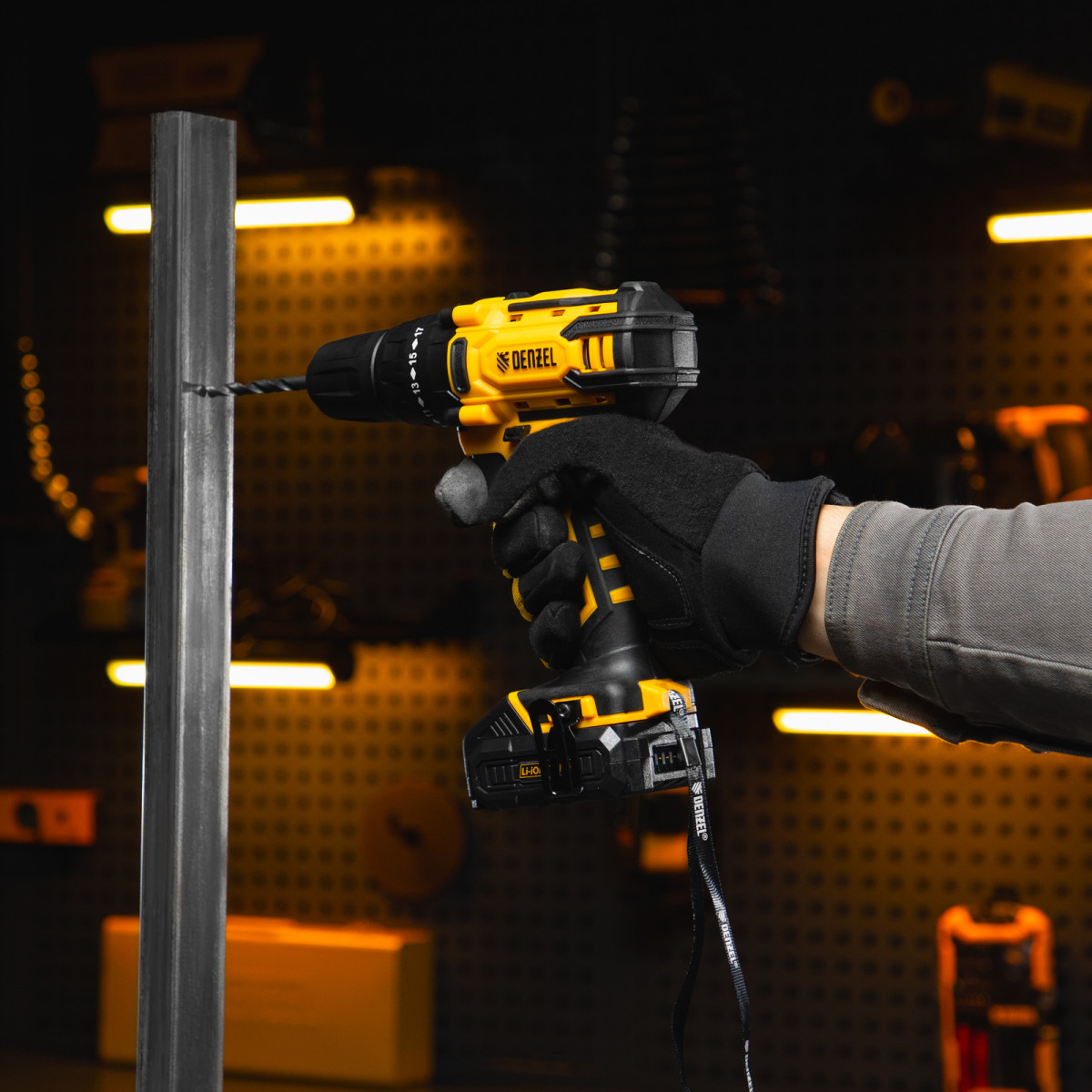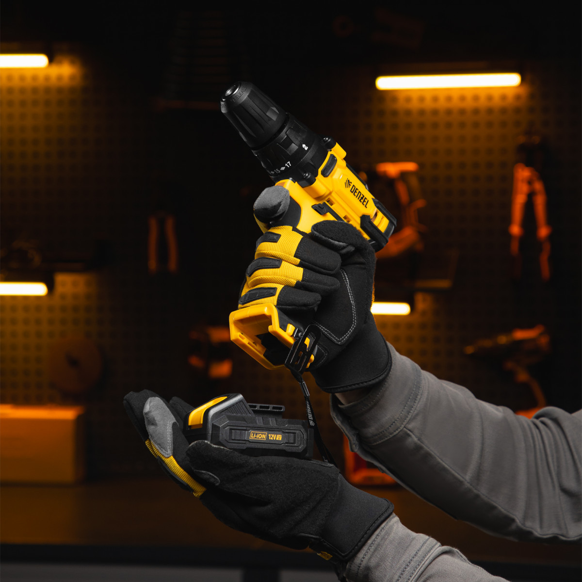 Аккумуляторная дрель-шуруповерт Denzel CDL-12-02BM 26105 с 2 батареями Li-Ion 12 В предназначена для монтажа и демонтажа резьбовых соединений, cверления отверстий в металле (до 10 мм), древесине (до 16 мм), пластмассе и других материалах. Инструмент пригодится профессионалам и любителям на строительной площадке, дома или на даче.,Надежные литий-ионные аккумуляторы без эффекта памяти и защитой от глубокого разряда обеспечивают долгий срок службы инструмента. Дрель не зависит от сети питания, что делает удобной работу на строительных объектах, на высоте и в отдаленных участках дома.
