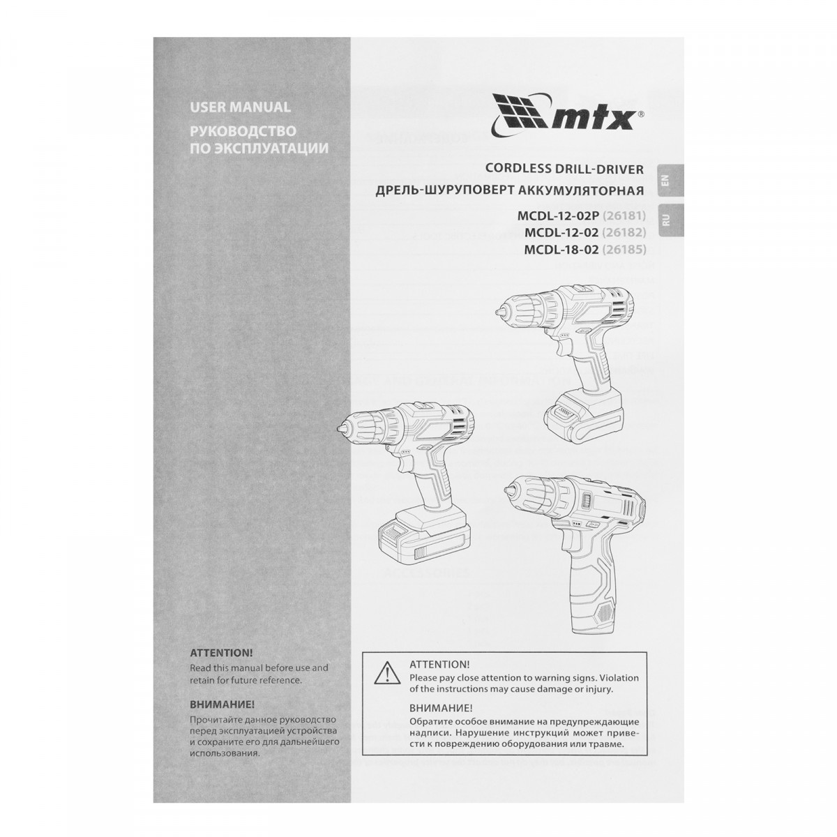 Дрель-шуруповерт аккумуляторная MCDL-18-02, Li-Ion, 18 В, 2 акк. MTX