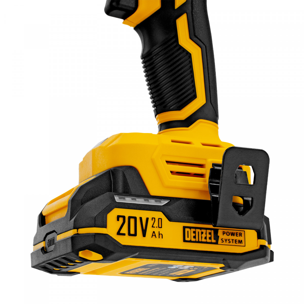 • Универсальность — аккумулятор Li-Ion емкостью 2 А·ч совместим со всеми инструментами единой платформы Denzel Power System 20V.