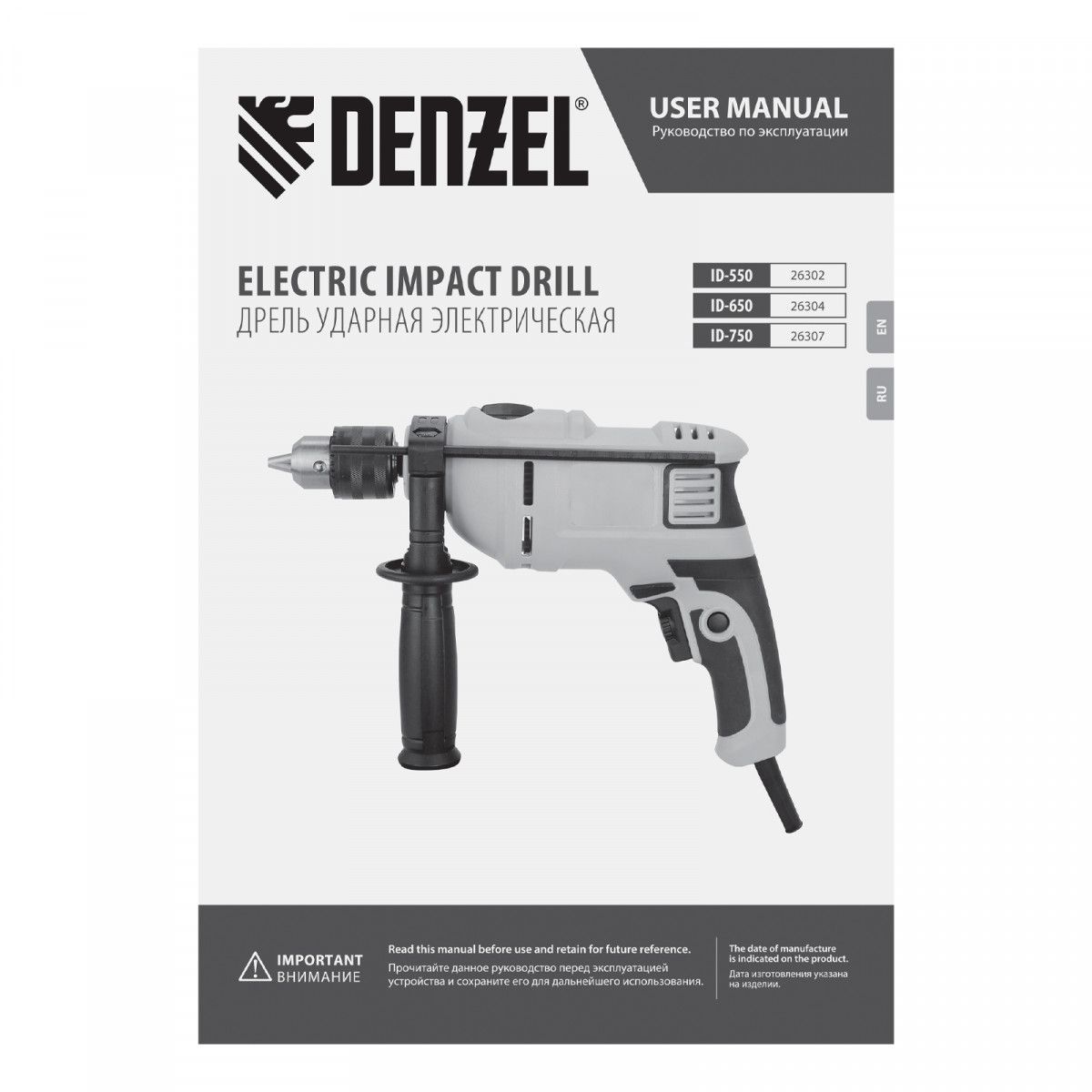 Дрель ударная ID-750, 750 Вт, 0-3000 об/мин, 48000 уд/мин Denzel