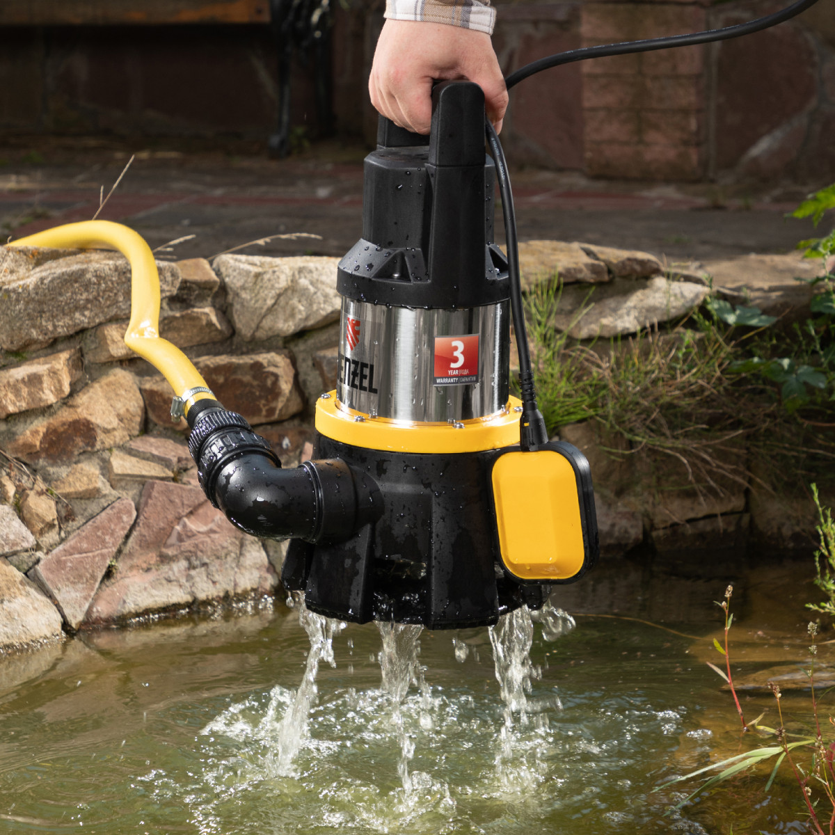 - Комфортное использование — сетевой кабель длиной 10 м удобен для подключения к удаленной розетке, ручка на корпусе облегчает транспортировку и погружение.