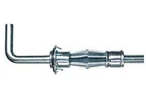 Дюбель для пустотелых конструкций «МОЛЛИ» (костыль) – металлический дюбель, используемый для крепления: полок, шкафов, антенн, картин, карнизов, люстр, бра, к газобетону, кирпичной кладке с наличием больших полостей, к любым потолочным перекрытиям и пустотелым конструкциям. Закрепление дюбеля с крючком производится в сквозное отверстие плиты и листа. Дюбель вставляется в просверленное отверстие листа, просверленного насквозь, далее вкручивается винт, наворачивающий дюбель узлом на резьбу с обратной стороне листа, обеспечивая надежную фиксацию