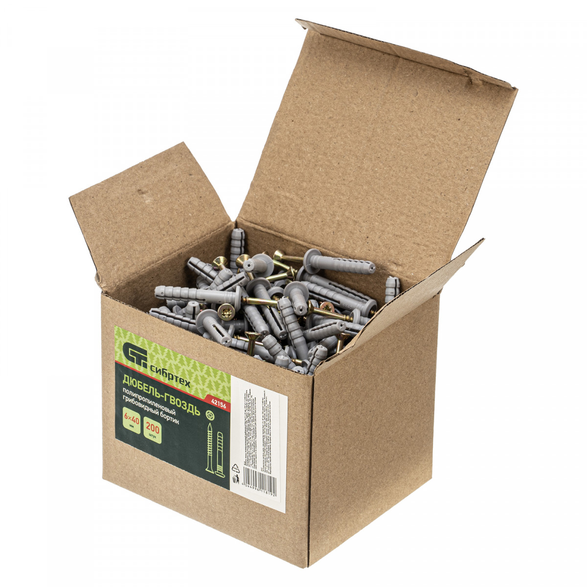 Полипропиленовый дюбель-гвоздь Сибртех 42156 с грибовидным бортиком, размером 6 х 40 мм, 200 шт. в упаковке, используется при проведении ремонтных и отделочных работ. Позволяет крепить плинтусы, рейки, рамки, зажимы, монтажные короба, держатели для труб. Грибовидный бортик плотно прижимает деталь к основанию. Гвоздевой дюбель применяется в профессиональной сфере, подходит также для самостоятельного обустройства квартиры или дачи.