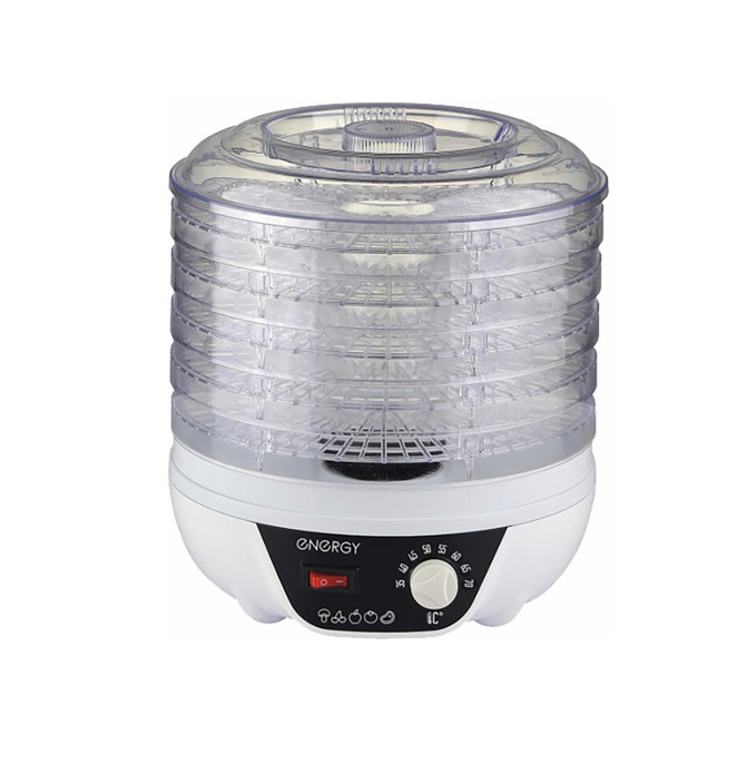 Сушка овощей и фруктов это самый эффективный способ сохранить в них все важные для здоровья микроэлементы и витамины. Благодаря идеальному соотношению нужной температуры и скорости обдува продукты просушиваются равномерно и невероятно быстро. Тип: конвективная, материал поддонов: прозрачный пластик, число поддонов: 5, мощность: 230 Вт, регулировка температуры сушки, управление: механическое, максимальная загрузка: 3 кг, особенности: защита от перегрева, индикация включения