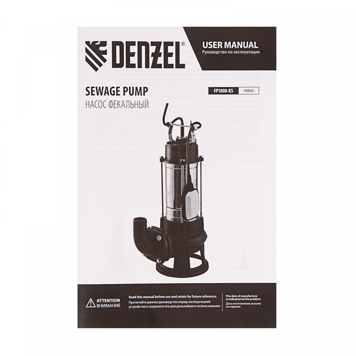 Фекальный насос FP1800-KS, 1800 Вт, напор 17 м, 26000 л/ч, нож-измельчитель Denzel
