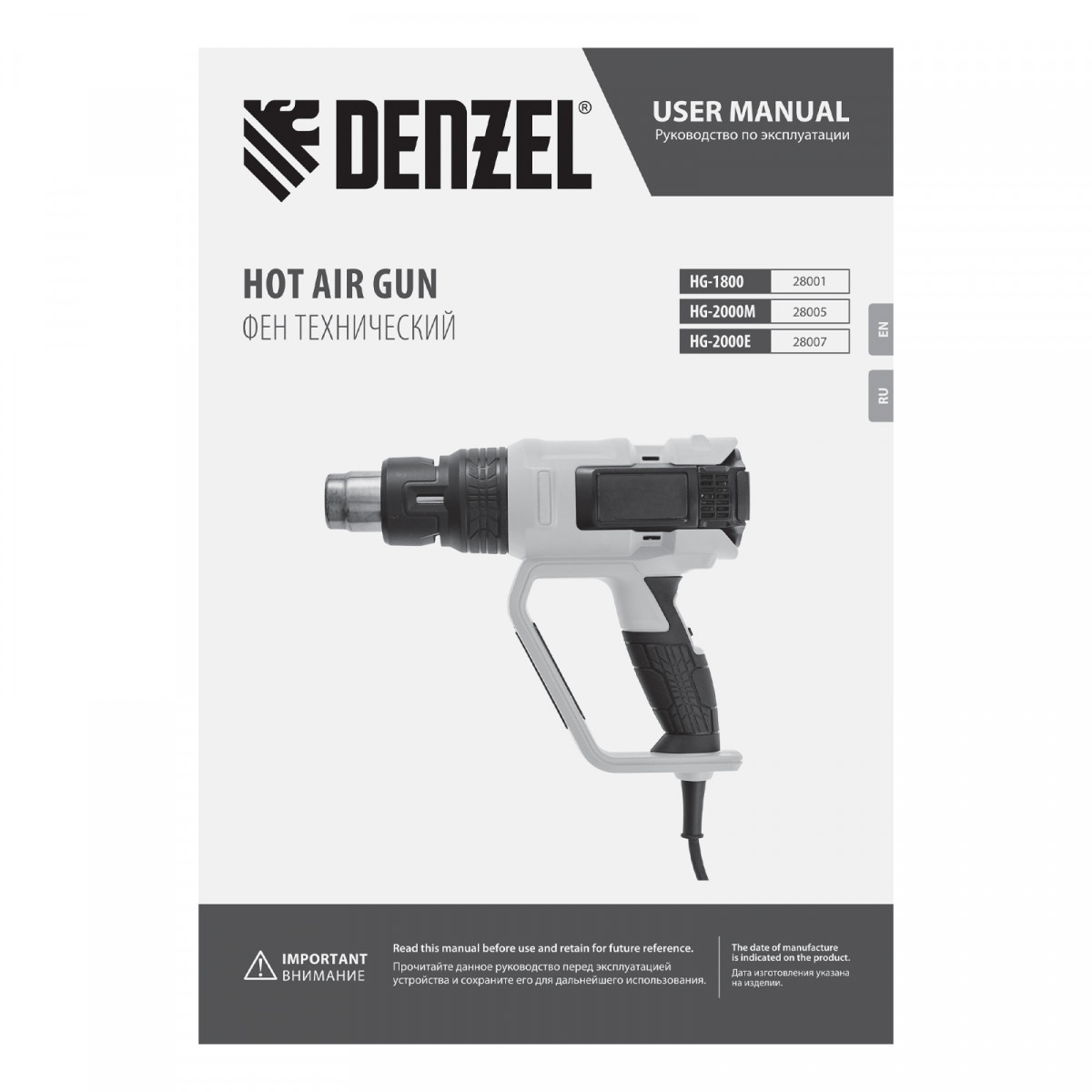 Фен технический HG-1800, 1800 Вт, 3 режима Denzel