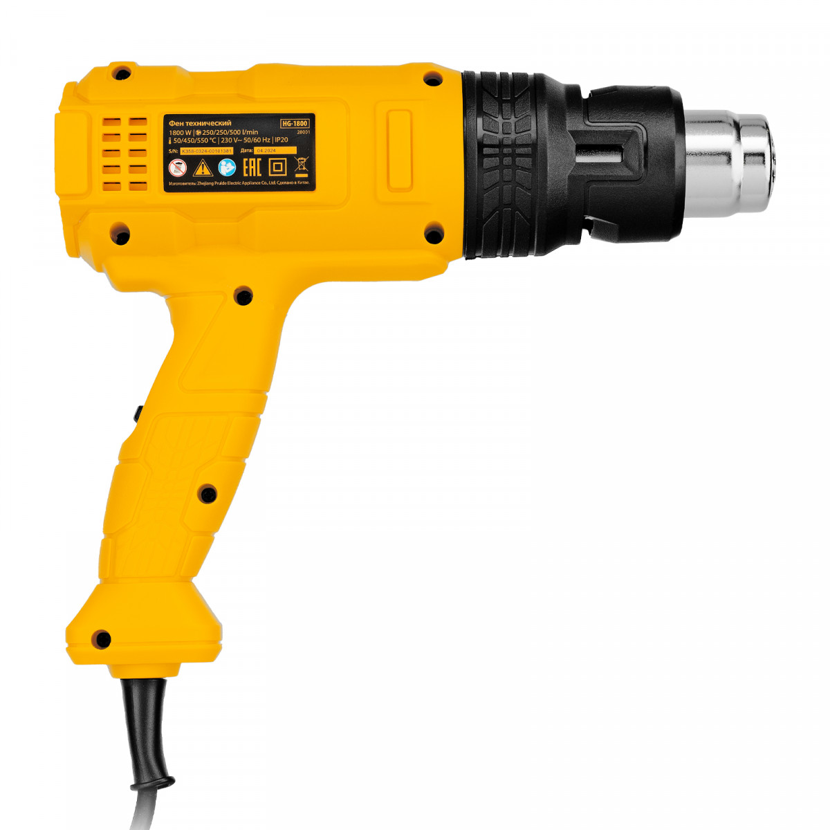 Фен технический Denzel HG-1800 28001 мощностью 1,8 кВт работает в 3 режимах: с температурой 50/450/550 ℃ и производительностью 250/250/500 л/мин соответственно. Используется в качестве источника горячего воздуха для нагрева и просушивания различных материалов, снятия лакокрасочных покрытий, сварки изделий из пластика, дезинфекции поверхностей, а также при проведении слесарных работ, ремонта и строительства. Набор стандартных опций без лишнего функционала обеспечивает идеальное соотношение цены и качества, делает инструмент оптимальным вариантом для бытового применения.