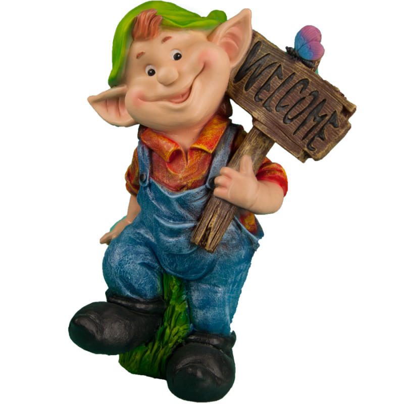Фигура садовая Гном с табличкой WELCOME остроухий