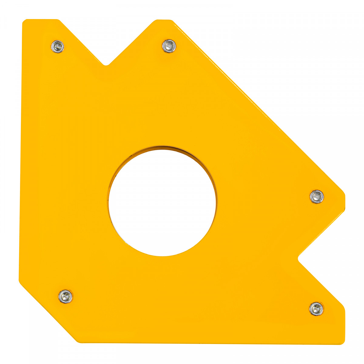 Фиксатор магнитный Denzel 97560 выдерживает усилие 75 LB (34 кг) и используется при проведении сварочных работ. Надежно фиксирует детали разного размера под углом 45°, 90° и 135° без риска их смещения или падения.