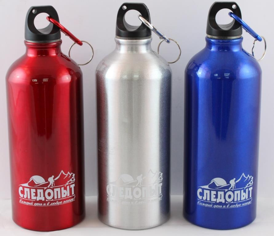 Фляжка-бутылка алюминиевая с карабином СЛЕДОПЫТ 600мл