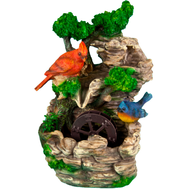 Садовый фонтан - декоративный и функциональный. Для установки и подключения необходимы электричество и вода. Далее необходимо фонтан подключить к электричеству и вода начинает фонтанировать, увлажняя воздух.