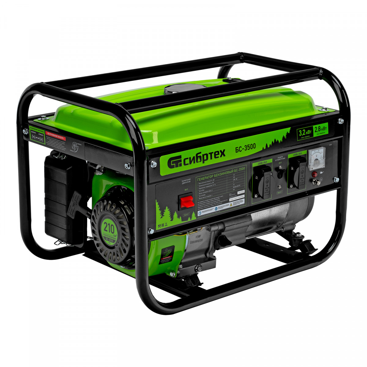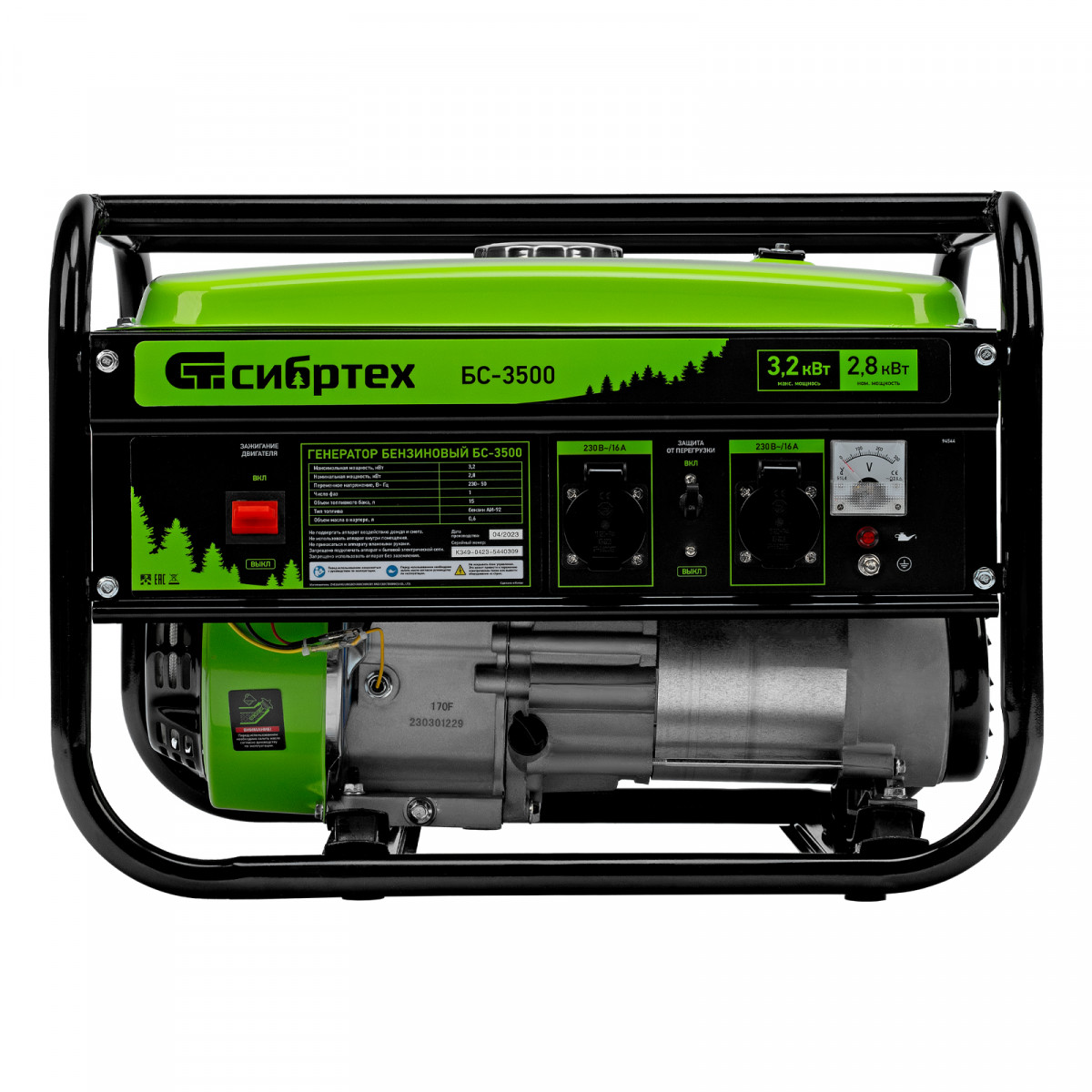 Генератор бензиновый БС-3500, 3.2 кВт, 230В, четырехтактный, 15 л, ручной стартер Сибртех