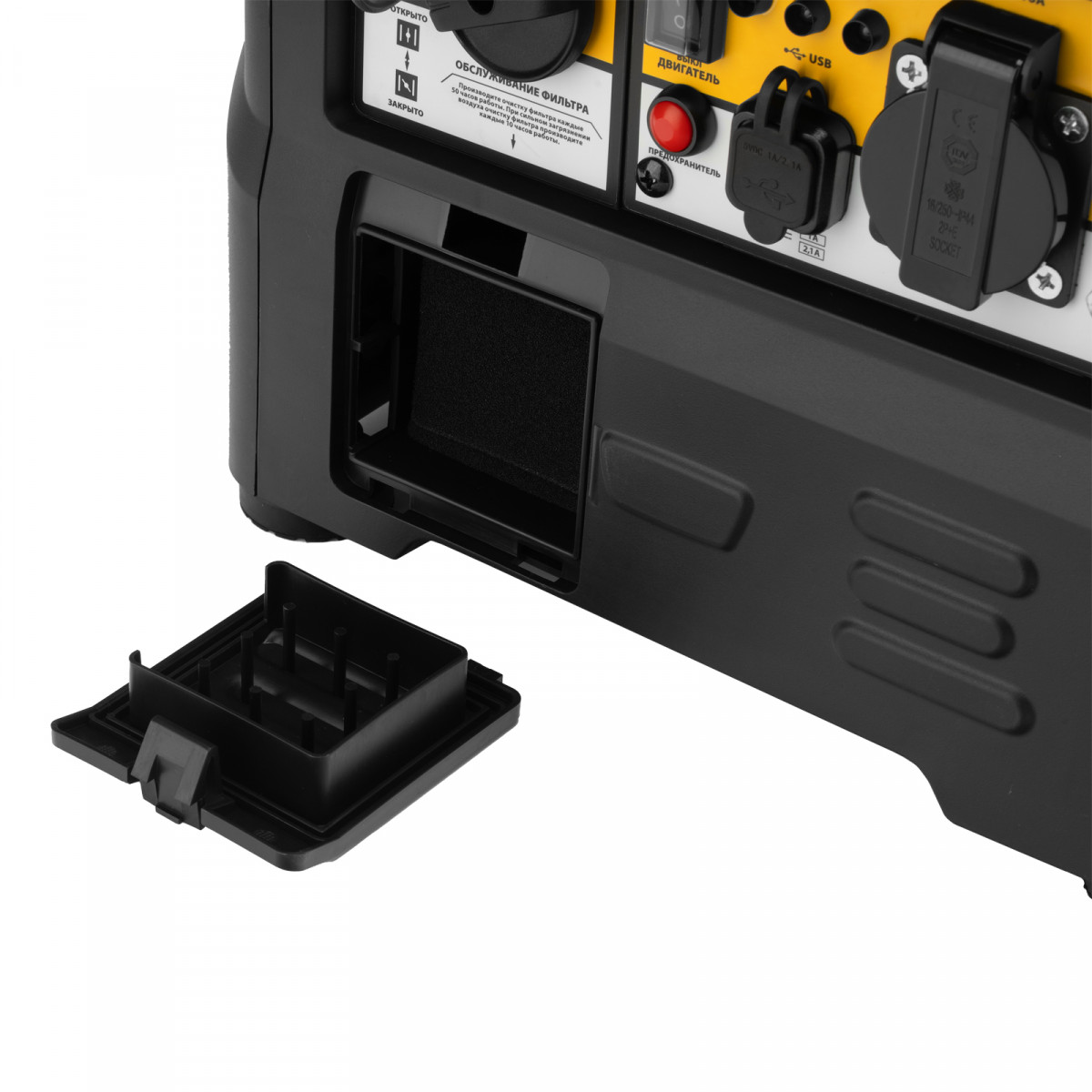 • Защита от перегрузки — при значительном превышении допустимой нагрузки подача тока прекращается для предотвращения поломки генератора.