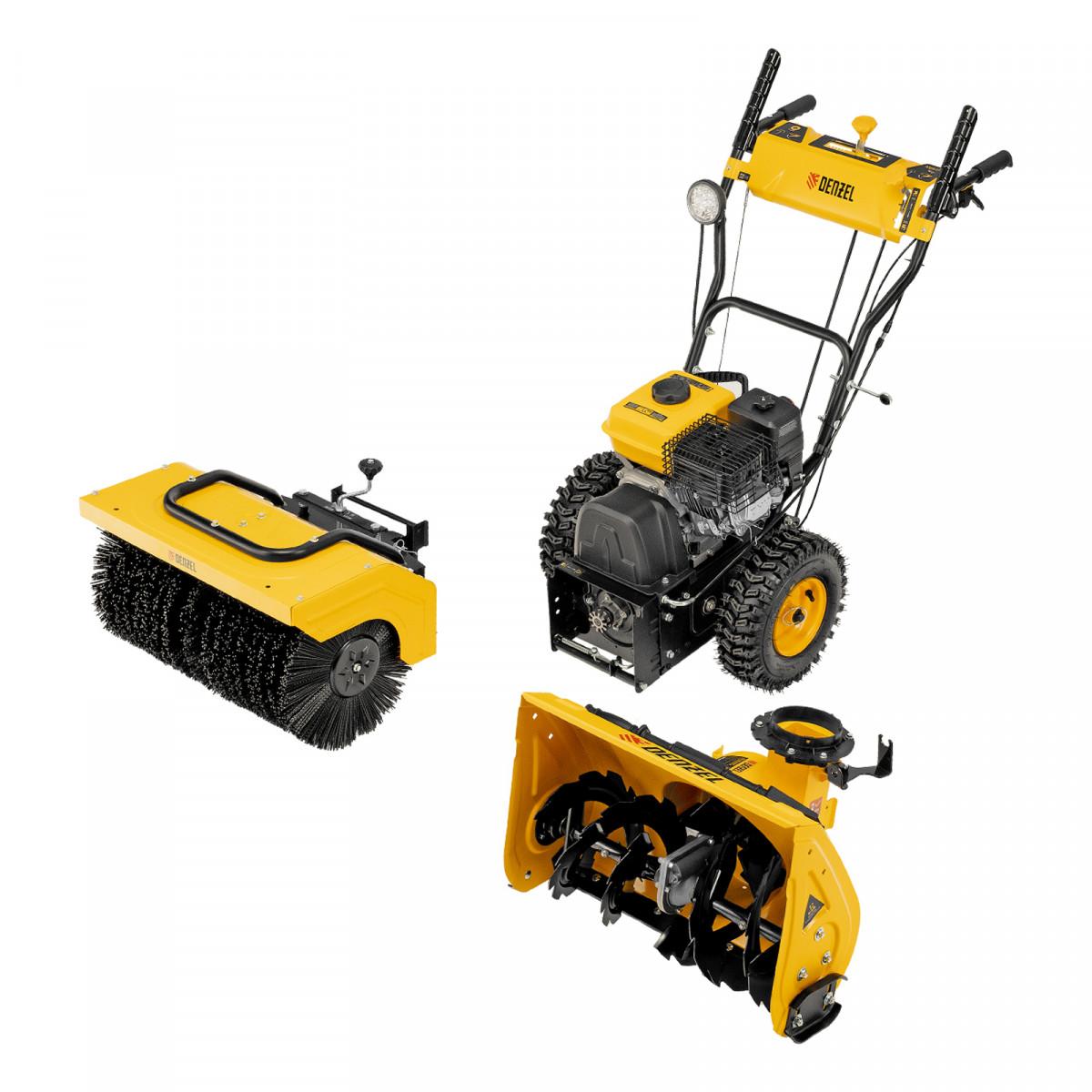 Гибридная снегоуборочная машина с функц. подметания SWB-600, 212 сс, руч. старт, 2 насадки Denzel