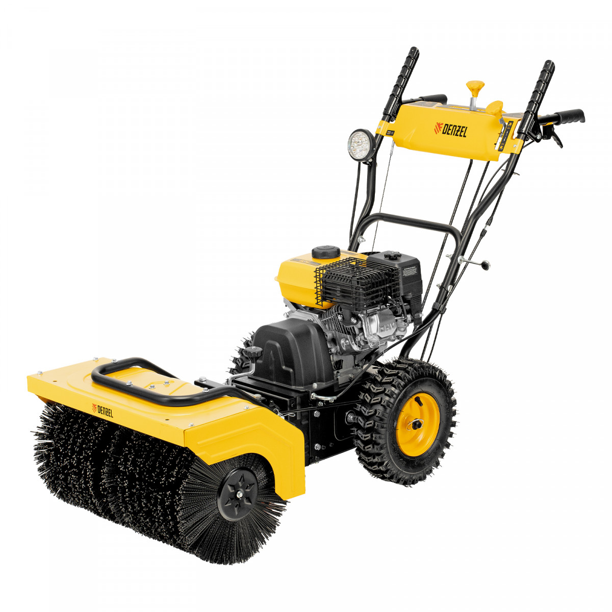 Гибридная снегоуборочная машина Denzel SWB-600 97661 с двигателем объемом 212 см3, ручным стартером и 2 насадками, предназначена для очистки территории от снега, а благодаря функции подметания справляется также с уборкой листвы, пыли и мусора. Ширина обработки щеткой составляет 700 мм (с учетом подрезателей Denzel 97102), ширина шнека — 560 мм при высоте захвата 430 мм, поэтому машина оптимальна для применения на дачном участке.