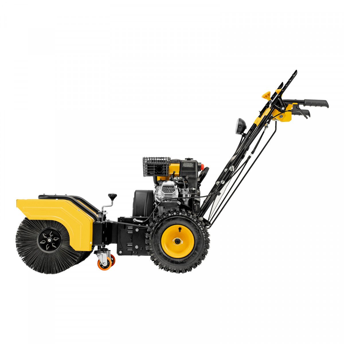 - Рукоятка управления поворотом насадки — можно менять положение подметальной щетки на 14°.