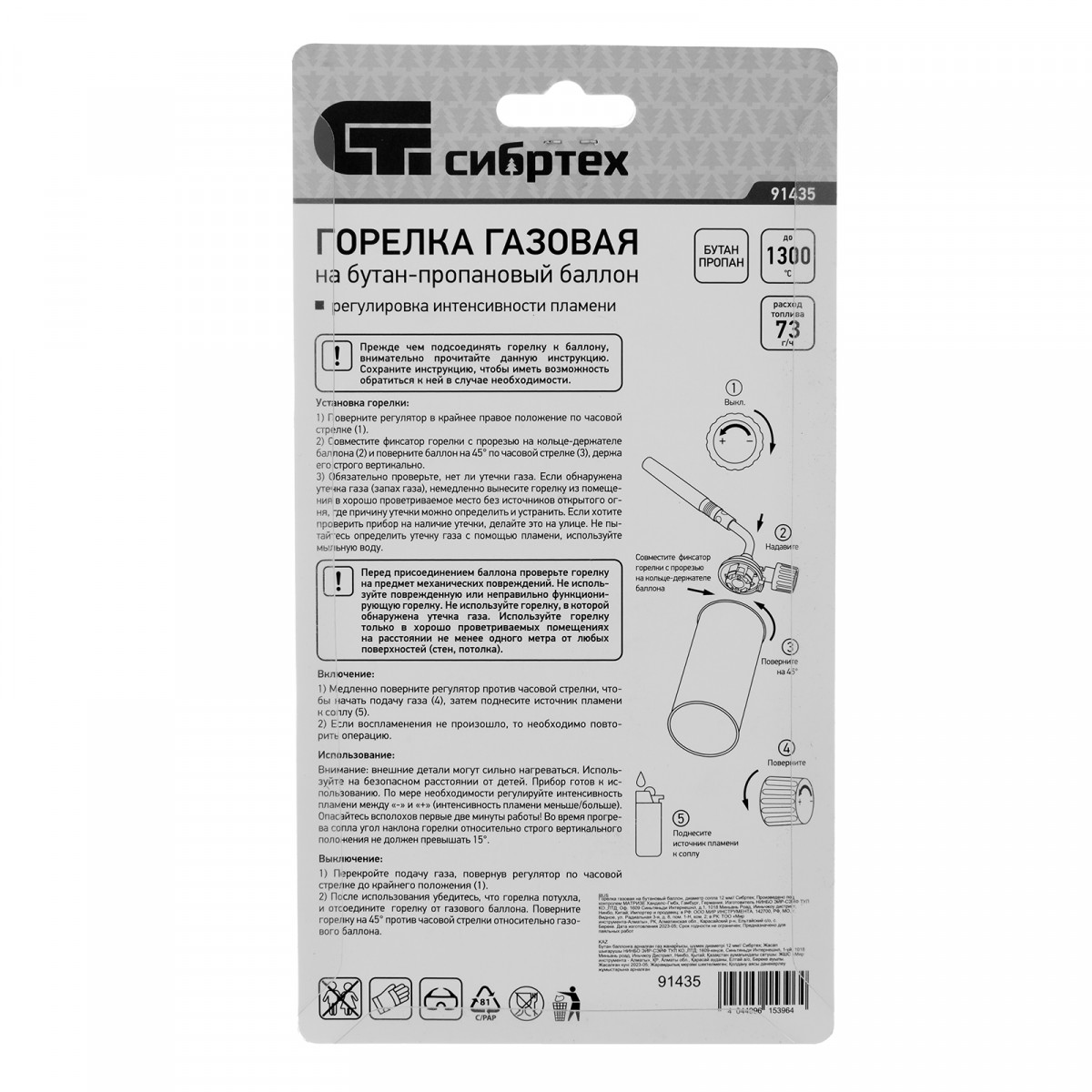 Газовая горелка Сибртех 91435 с диаметром сопла 12 мм предназначена для установки на пропан-бутановый баллон. Используется для нагрева труб и различных деталей, пайки, розжига огня без химических средств. Горелка будет полезна дома, в гараже, на даче или пикнике.
