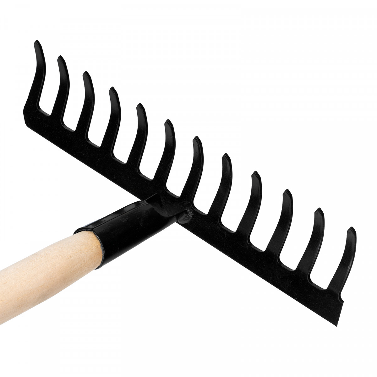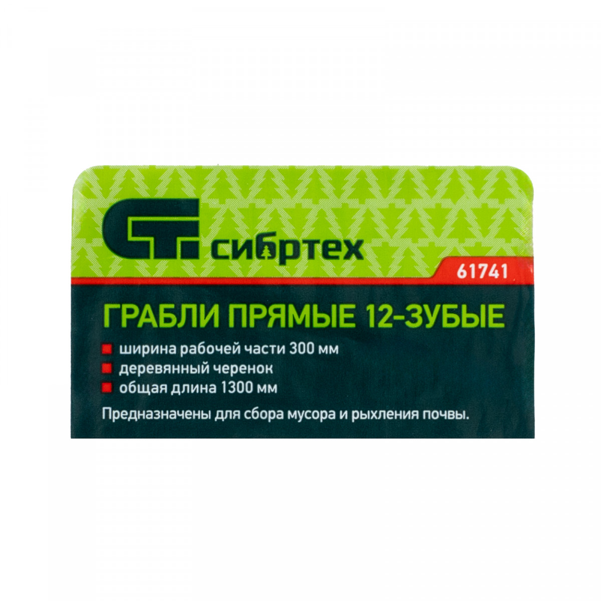 Грабли стальные, 300х1300 мм, 12 прямых зубьев, деревянный черенок, Сибртех