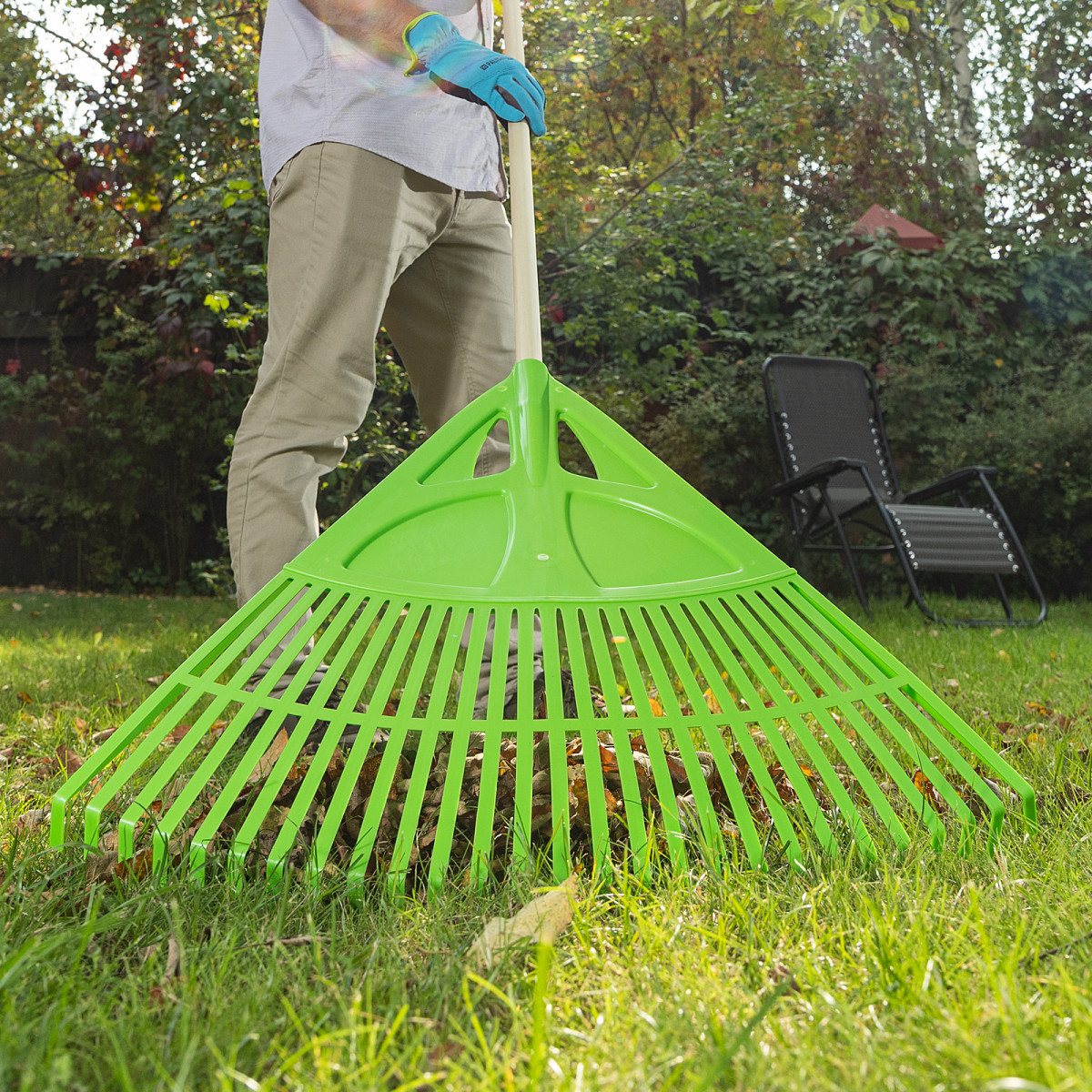 - Надежность и долговечность — грабли изготовлены из эластичного и стойкого к ультрафиолету полипропилена.
