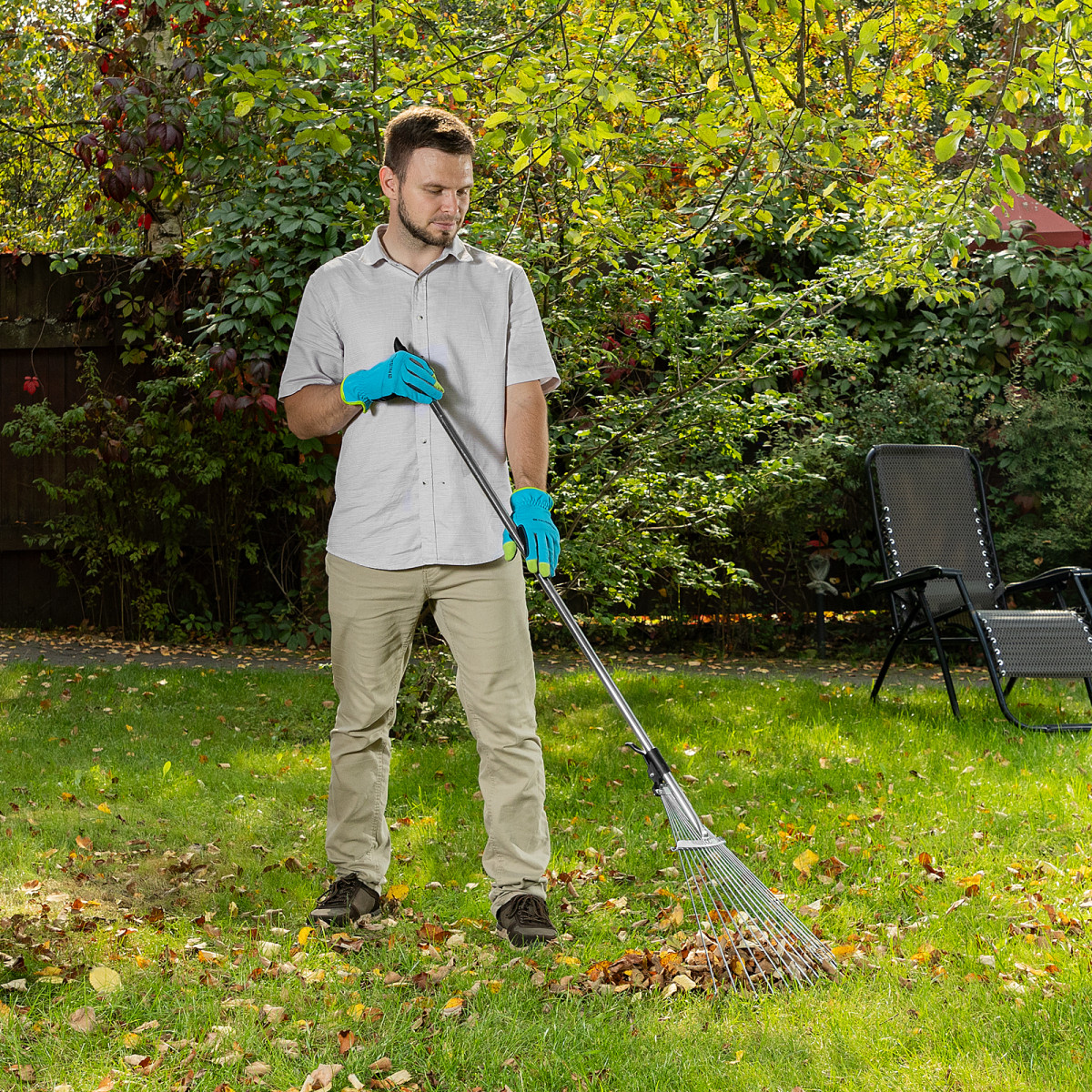 Веерные стальные грабли Palisad 6175655 размером 190-520 х 1200-1500 мм, раздвижные, с 15 зубьями и стальным черенком, пригодятся для работы на дачном участке. Используются для уборки веток, мусора, опавших плодов с газонов и грядок.
