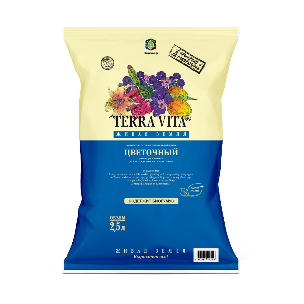 Полностью готовый питательный грунт Терра Вита применяется для посадки и пересадки всех видов цветочных и декоративных культур, выращивания рассады и укоренения черенков.