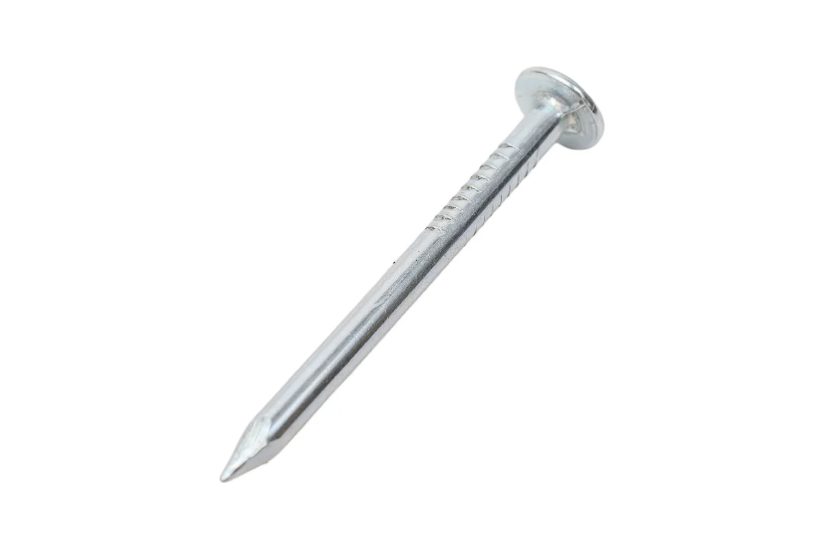 Оцинкованное покрытие обеспечивает защиту от коррозии, повышая долговечность гвоздя.