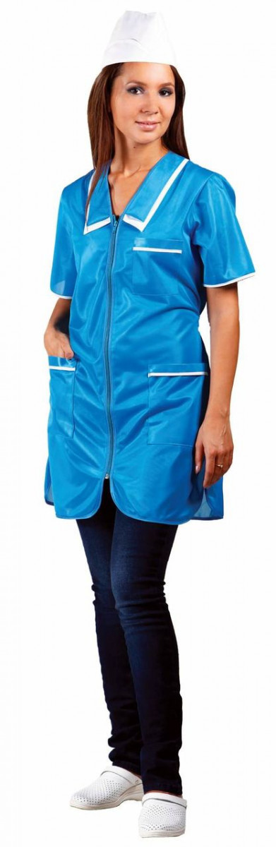 Воротник, карманы, рукава декорируются контрастной тканью.