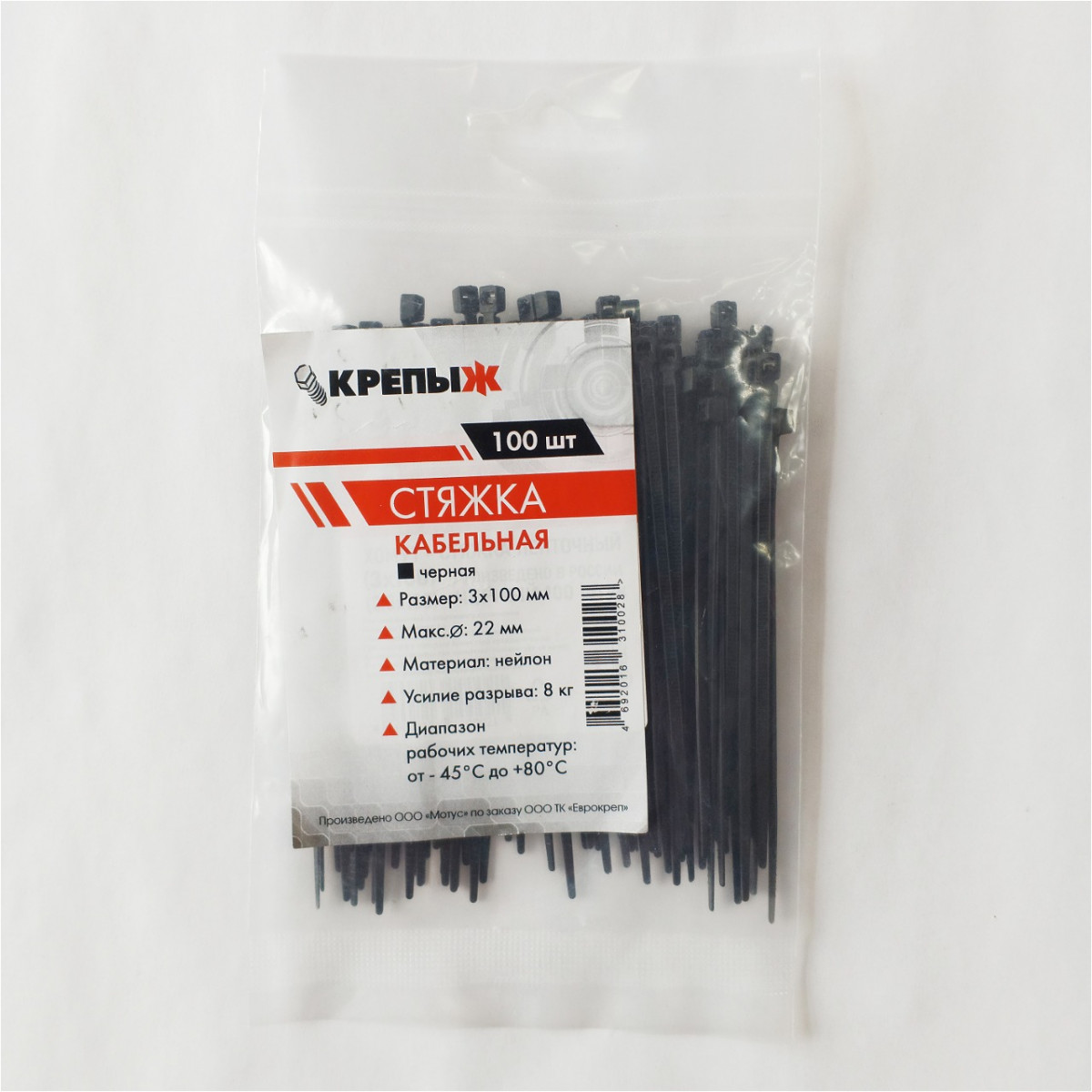 Хомут нейлоновый 3*100 мм черный КРЕПЫЖ