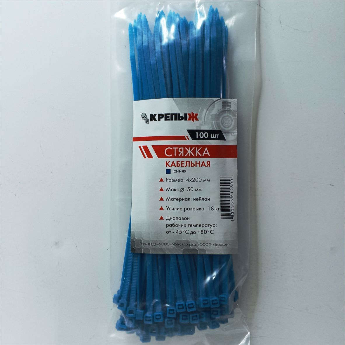 Хомут нейлоновый 4*200 мм синий КРЕПЫЖ