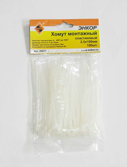 Хомут пластиковый 2.5Х100 белый Энкор (100 шт)