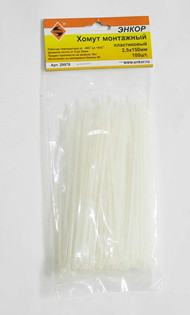 Хомут пластиковый 2.5Х150 белый Энкор (100 шт)