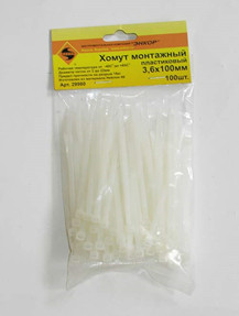 Хомут пластиковый 3.6Х100 белый Энкор (100 шт)