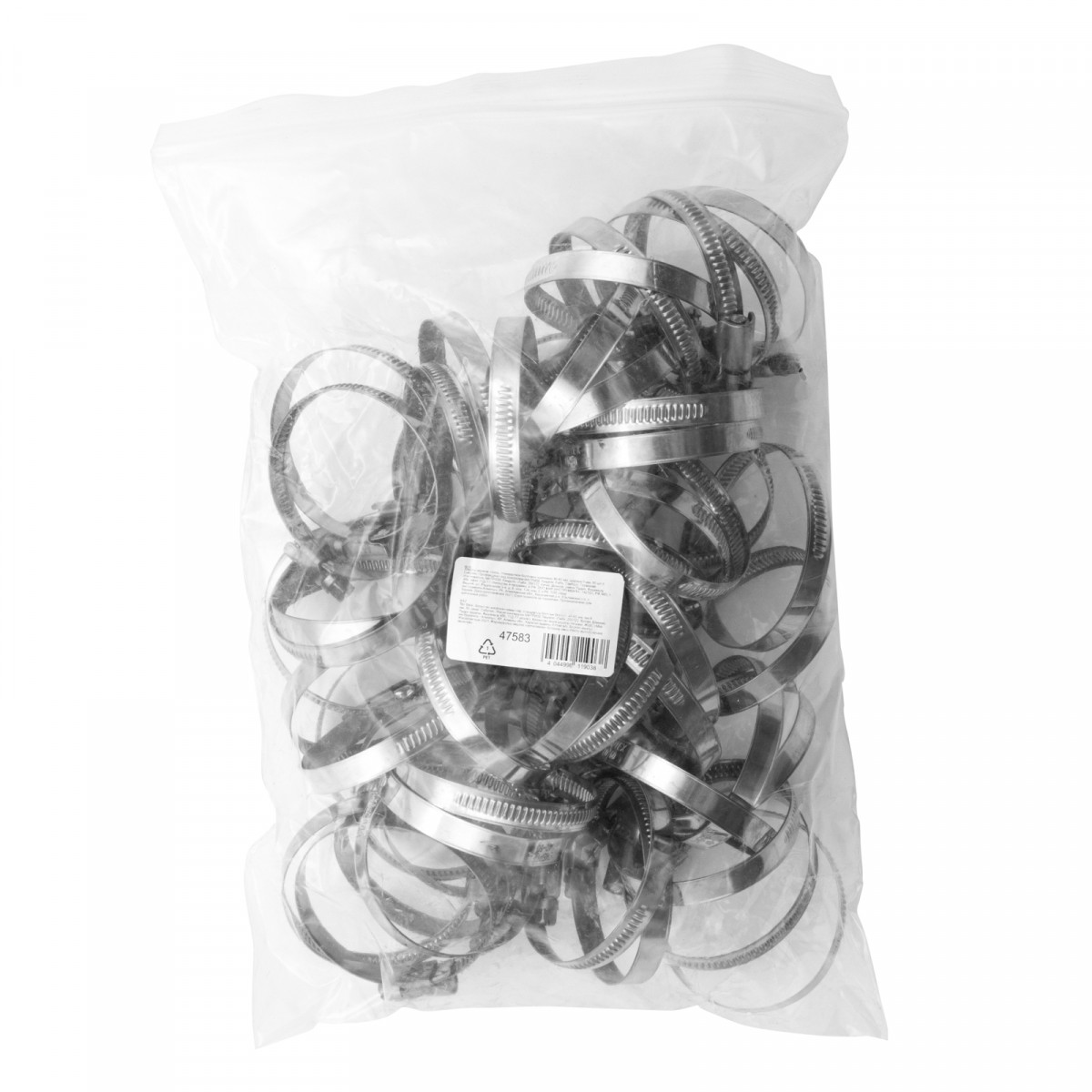 Хомуты Сибртех 47583 из нержавеющей стали, со стандартным болтовым креплением, с диаметом охвата 40-60 мм, шириной 9 мм, 25 шт. в упаковке, — крепежные элементы, применяющиеся для соединения шлангов и труб. Подходят для многократного использования. Хомуты затягиваются винтами, что обеспечивает удобство и надежность фиксации. Могут быть использованы для монтажа трубопроводных систем и обеспечения герметичных соединений в различных инженерных и транспортных системах.