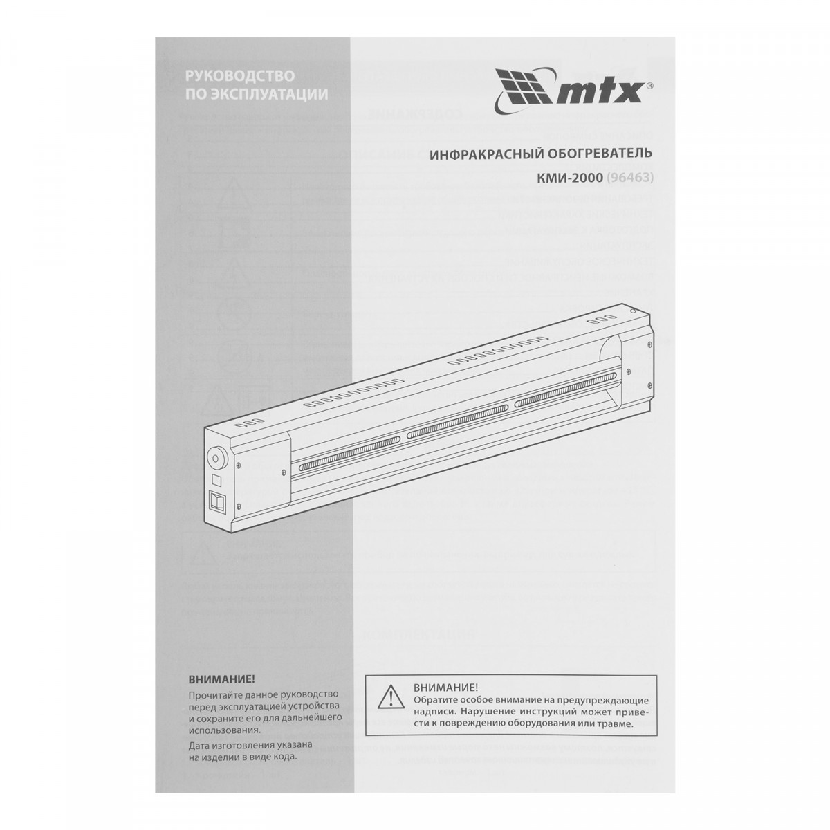 Инфракрасный обогреватель КМИ-2000, 230В, 2000 Вт, плавная регулировка мощности MTX