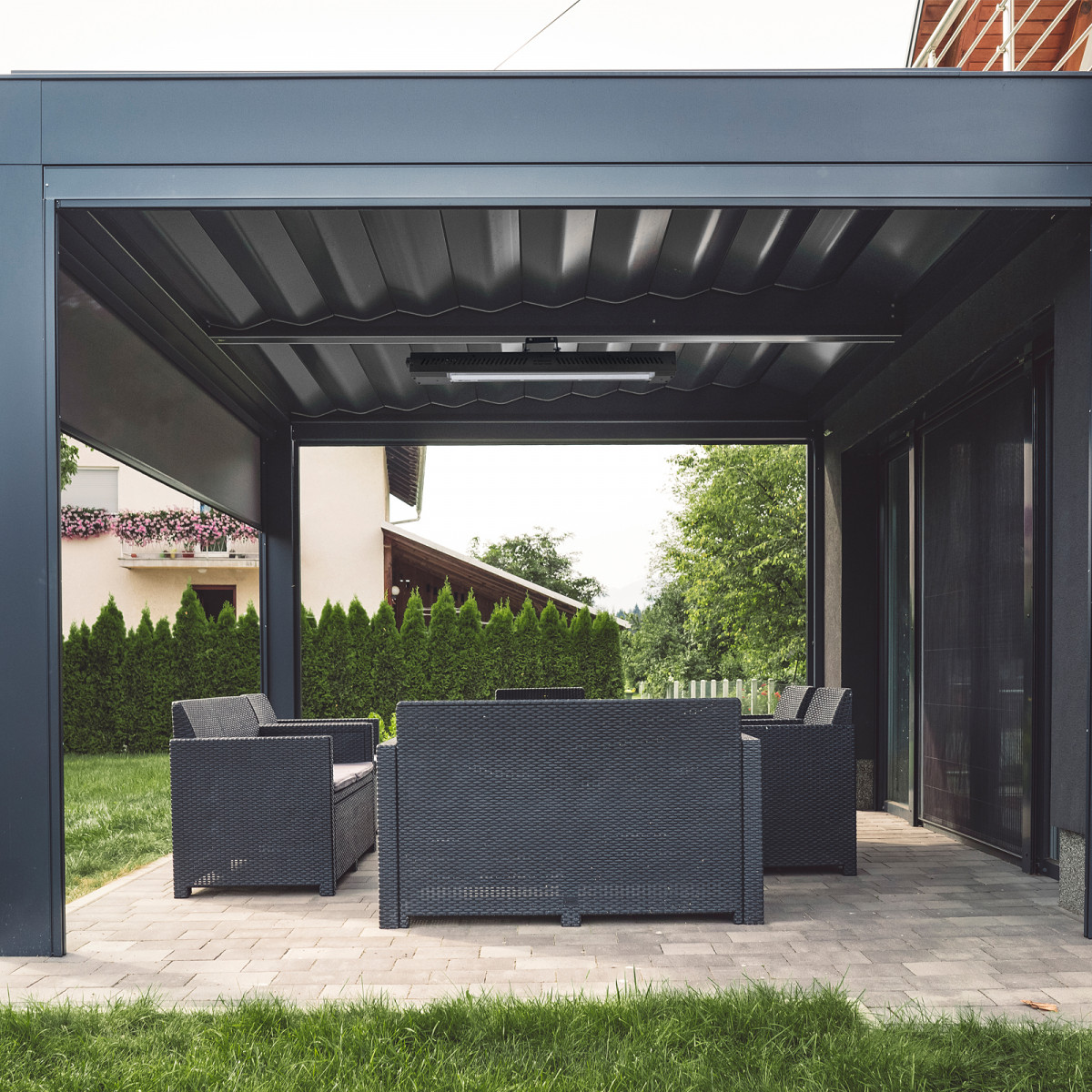 • Выбор зоны обогрева — конструкция кронштейна позволяет менять угол наклона обогревателя.