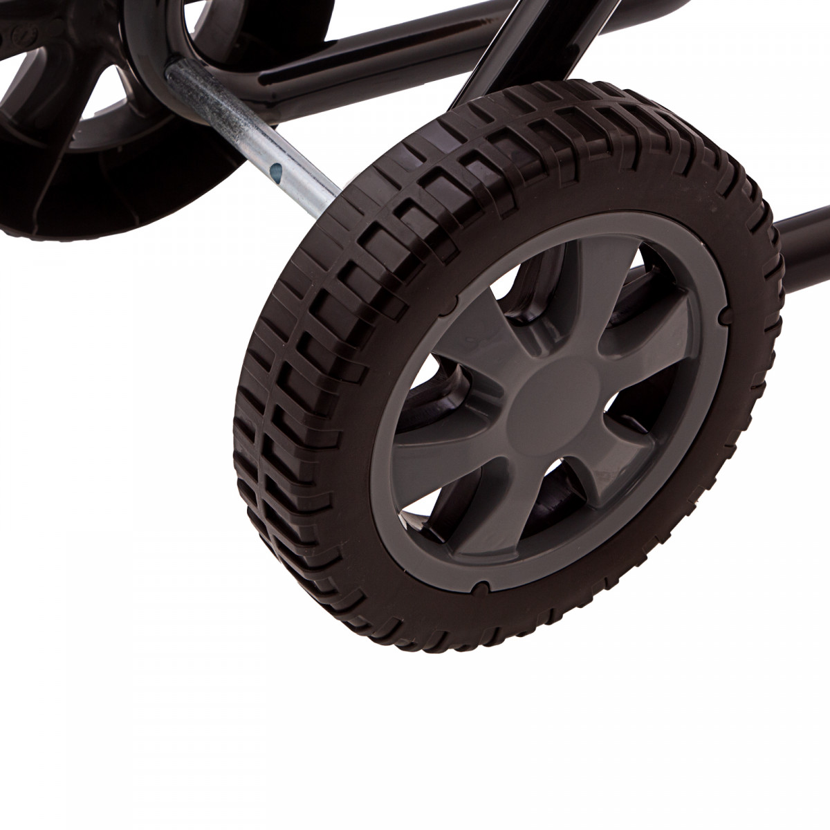 • Маневренность — для удобного перемещения по участку измельчитель оснащен колесами и ручкой.