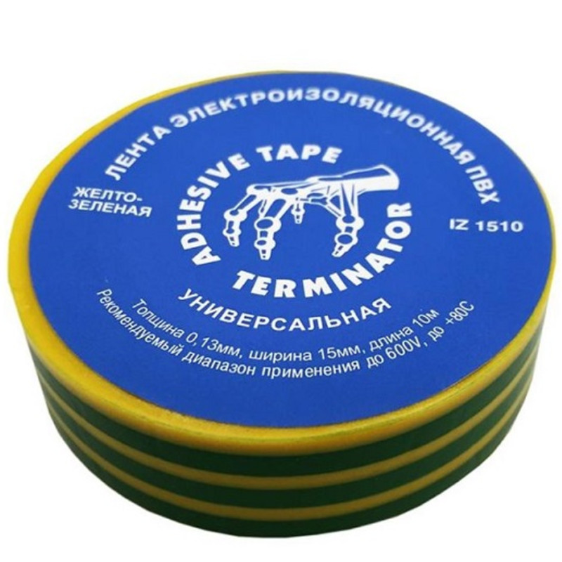 Изолента 15 мм/10 м желто-зеленая Терминатор