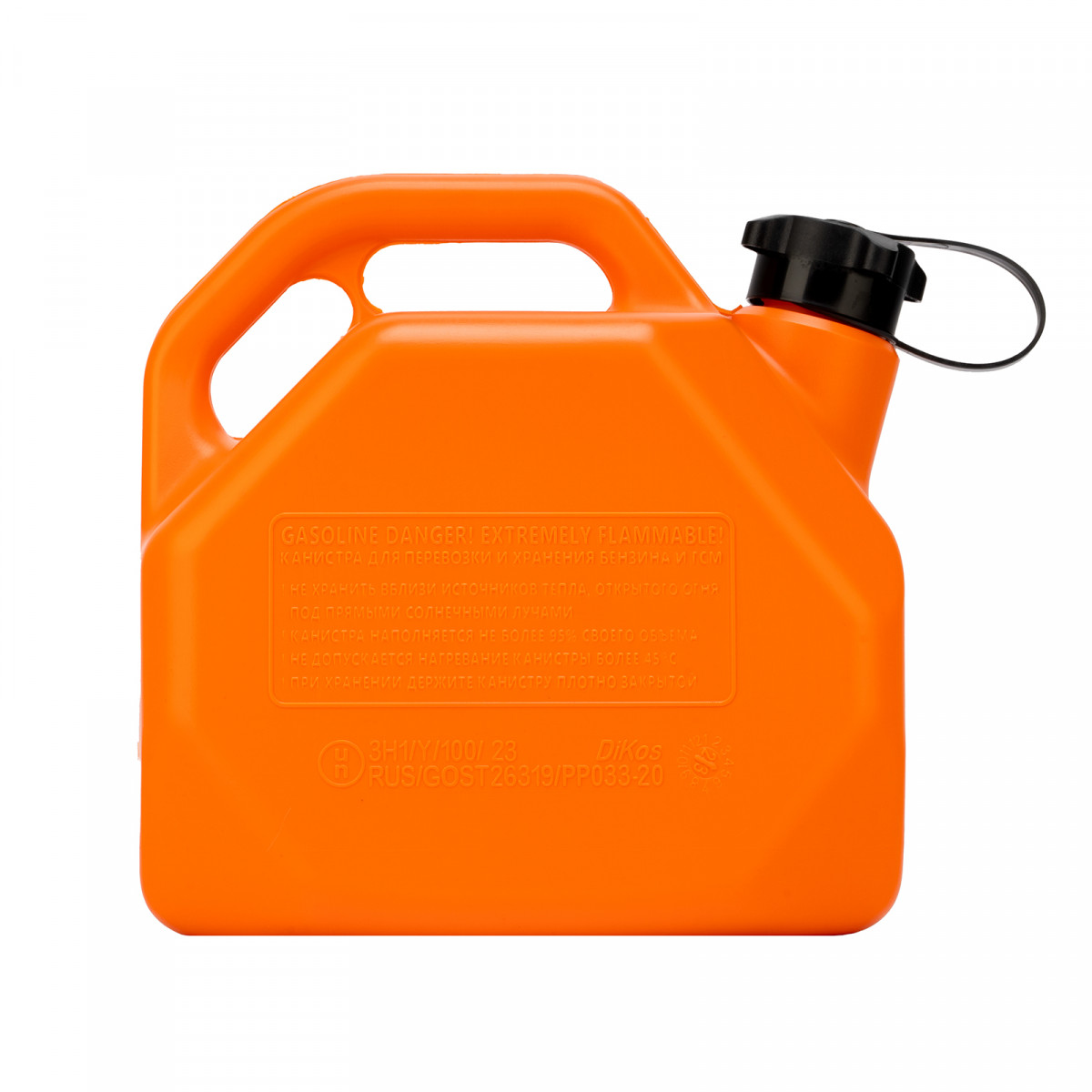 - Оптимальный объем — канистра обеспечивает запас топлива 5 л для дозаправки автомобиля и садовой бензотехники.