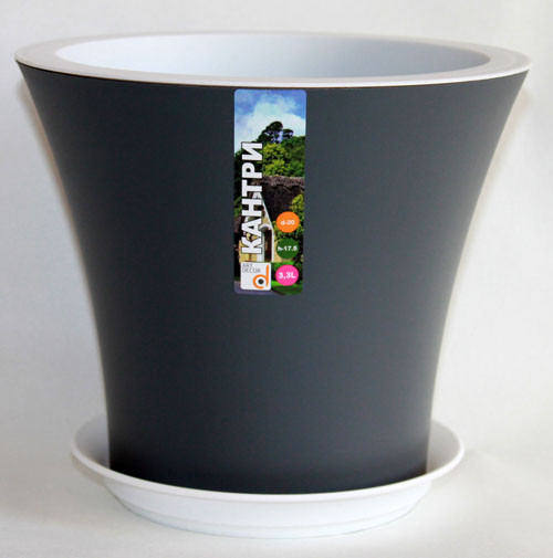 Кашпо Кантри пластиковый с поддоном.  Цвет: антрацит. Идеально подходит для озеленения интерьера и улицы. Яркость горшка придадут растению красивый вид. Устойчив к УФ-лучам. Легко моется.
