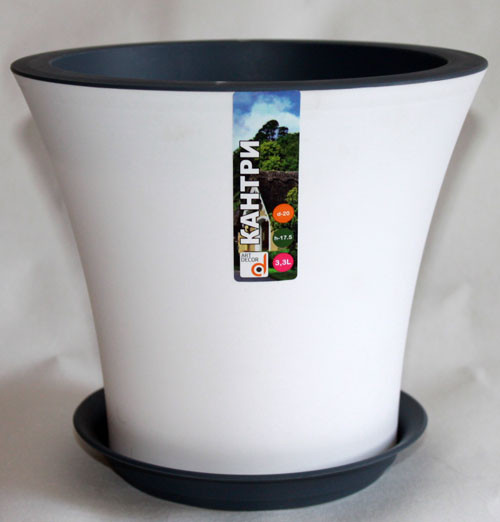 Кашпо Кантри белый-антрацит с поддоном 3,3 л