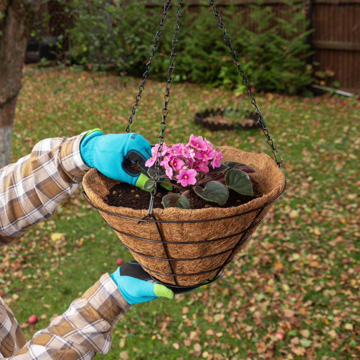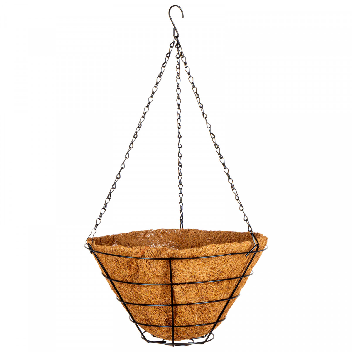 Подвесное кашпо Palisad 69022 диаметром 35 см, с вкладышем из коковиты в форме конуса, используется для посадки ампельных и вьющихся растений. Экологически чистая коковита отлично удерживает влагу и обеспечивает аэрацию корневой системы, что способствует правильному росту растений. Кашпо подходит для подвешивания как внутри, так и снаружи помещения, станет прекрасным украшением дома или сада.