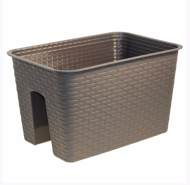 Кашпо навешивается на перила лестниц, ограждения открытых балконов, декоративные стенки. Простая система позволяет регулировать кашпо под разную ширину перил. Дно кашпо оснащено столбиками с отверстиями для отвода лишней воды. Объемная текстура имитирует плетеные изделия, при этом отличается прочностью и простотой в уходе. Кашпо из прочного пластика не боится прямых солнечных лучей и перепадов температур.