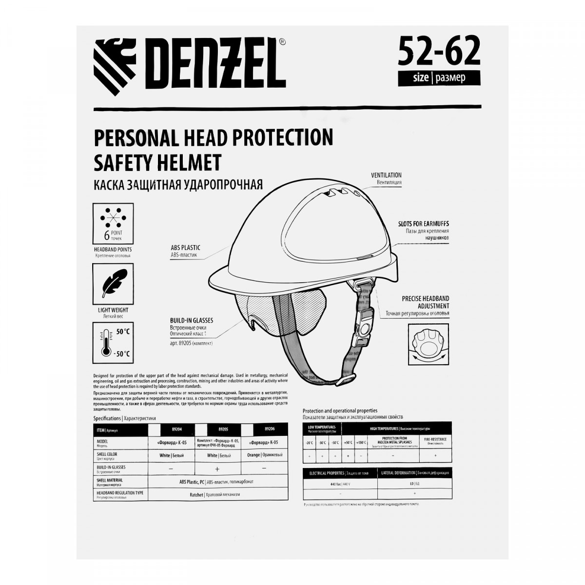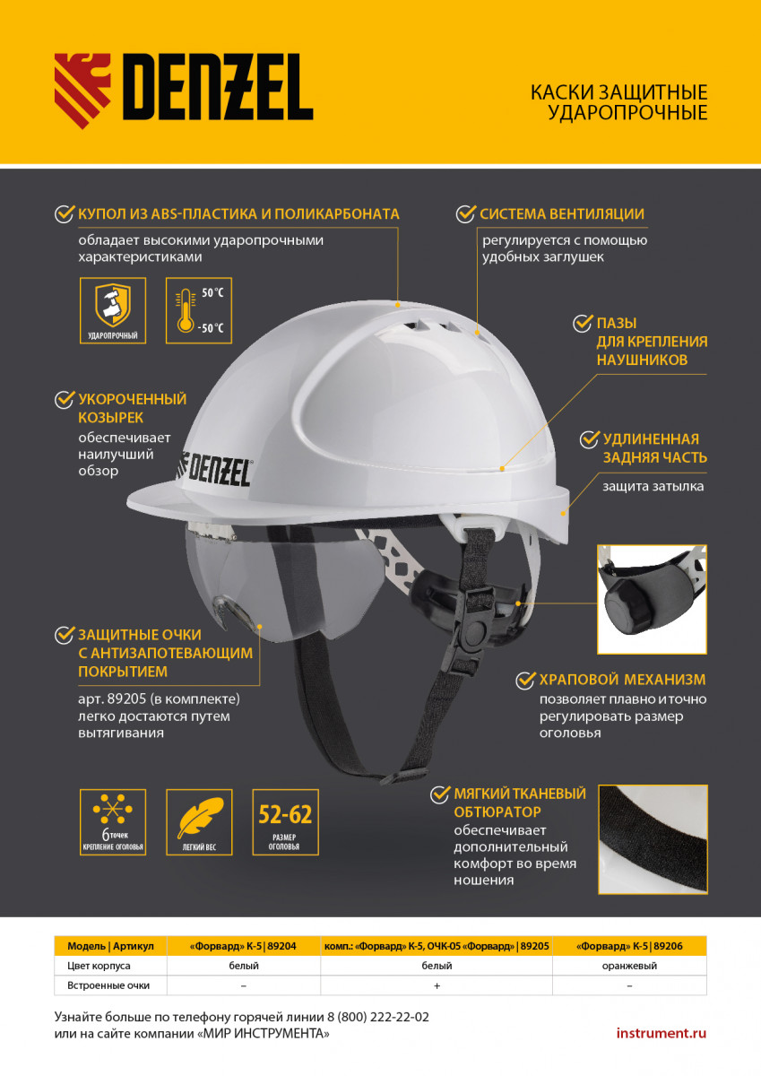 • Возможность использования в любое время года — каска выдерживает температуру от -50 до +50 °C.