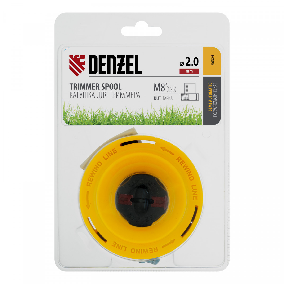 Катушка триммерная полуавтоматическая, легкая заправка лески, гайка M8x1.25, винт M8-M8 Denzel