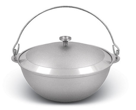 Походный казан-котел незаменим при приготовлении пищи на костре в походных и дачных условиях.Но этот казан универсален - его можно использовать как на плите (электрической или газовой) так и на печи для казана.Следует отметить идеальную точность изготовления этого толстостенного котелка, что является нормой для изделий "Кукмары".Идеальная подгонка крышки, плотный контакт с "блинами" электической плиты - здесь продумано все.Объем: 4,5 литра.Материал: Алюминий литой.Высота без крышки: 12,5 см.Высота с крышкой: 19 см.Высота с дужкой: 30 см.Диаметр: 30 см.Диаметр дна: 12 см.Толщина стенок: 3 мм