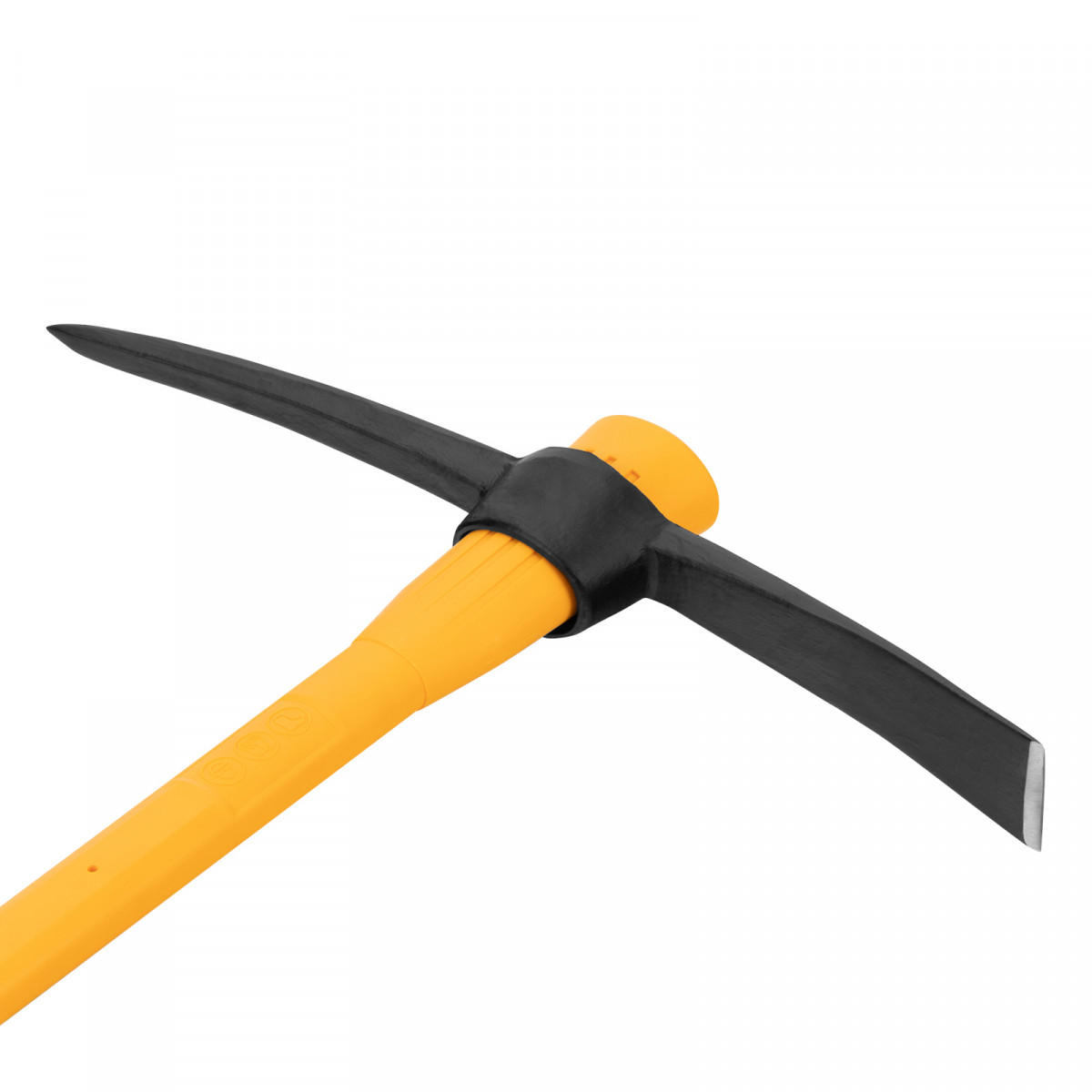 Кирка Denzel 21834 длиной 900 мм, с узкой рабочей частью, головой весом 1500 г и фибергласовой обрезиненной рукояткой, предназначена для работы по камню, рыхления каменистого, пересохшего земляного и глиняного грунта. Может использоваться для разрушения старой кирпичной кладки и колки льда. Инструмент будет полезен на строительной площадке и дачном участке.