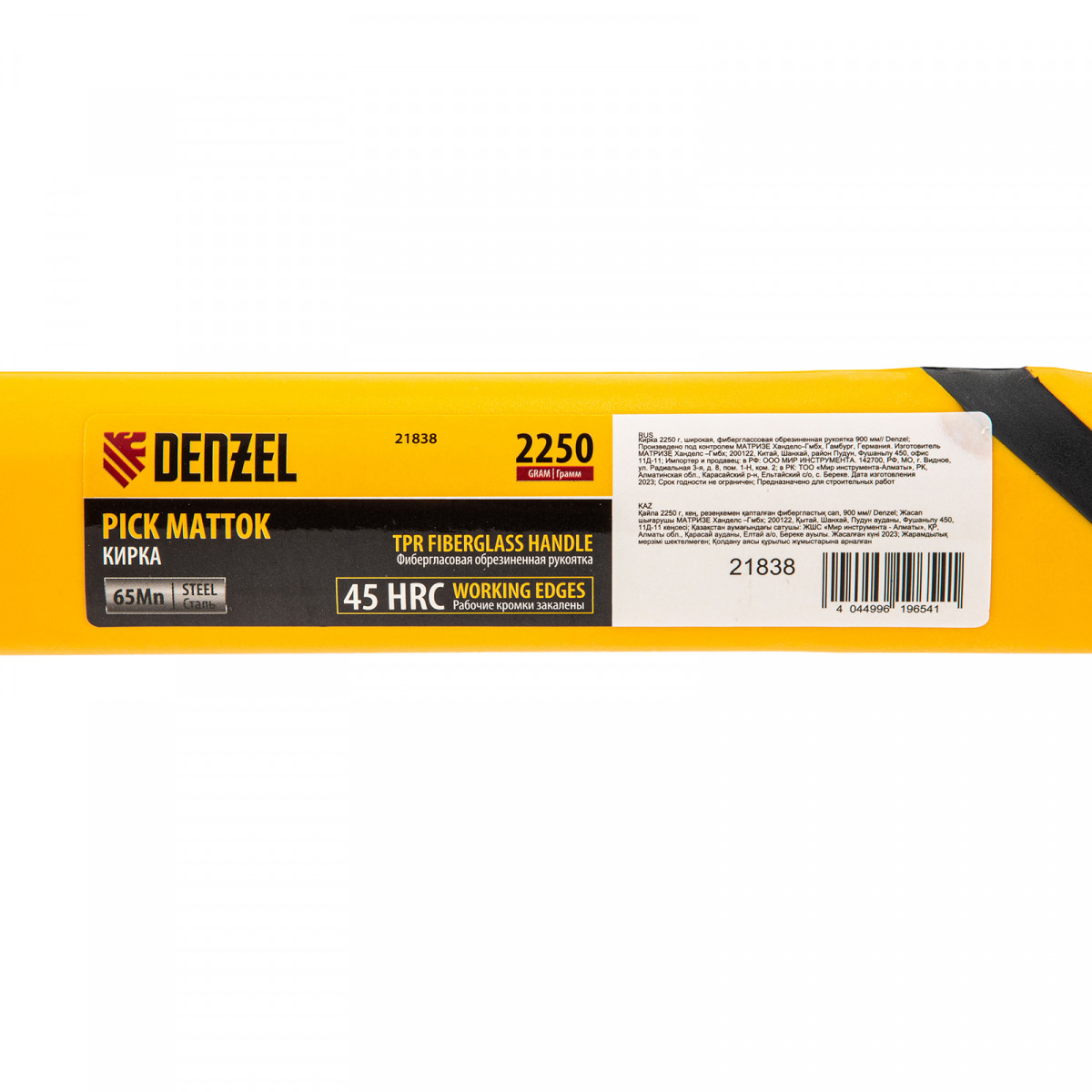 Кирка 2250 г, широкая, фиберглассовая обрезиненная рукоятка 900 мм Denzel