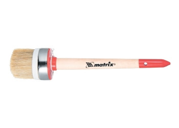 антикоррозийным покрытием. Трехкомпонентная эргономичная обрезиненная ручка не скользит в руке и имеет отверстие для подвешивания. Кисть предназначена для работ с масляными красками и лаками, устойчива к агрессивным составам.